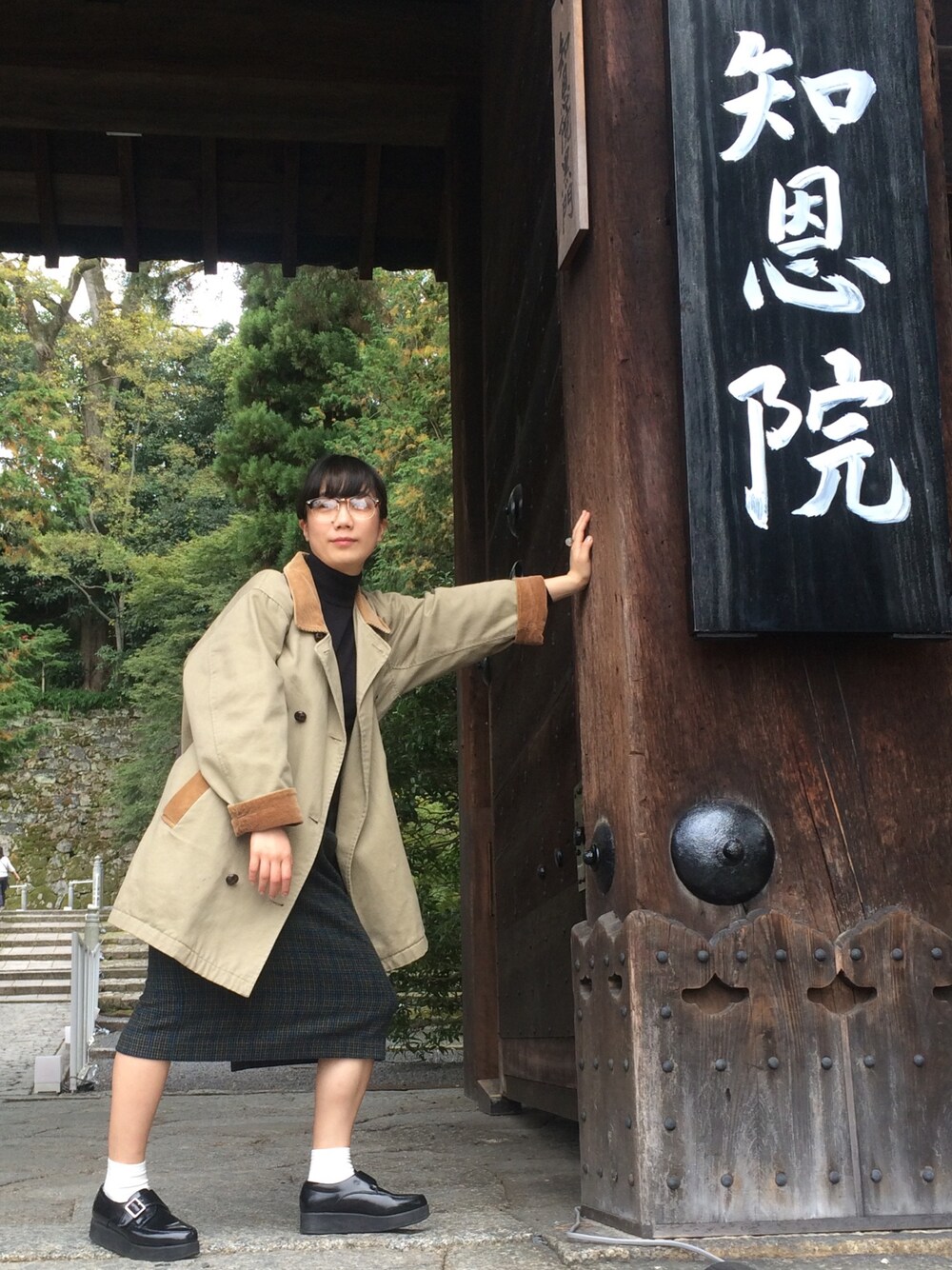 読書の秋ということで、ありとあらゆる小説を読むのにはまっています。 ということで、文学少女っぽいスタイリングをしてみました。 母との春秋恒例観光客ごっこで訪れた知恩院で撮影。御察しのとおり母にとってもらいました。 いい感じのほんまメガネが欲しいです。