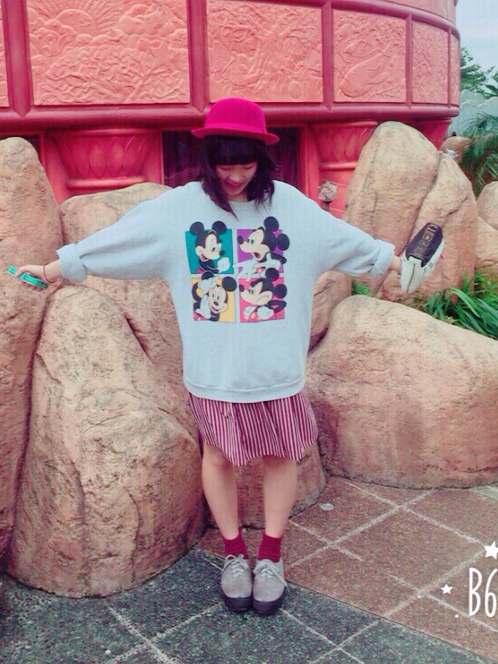 イクスピアリでランチ🍴ミッキーのスウェットに赤とグレーで色はおさえめ🍭