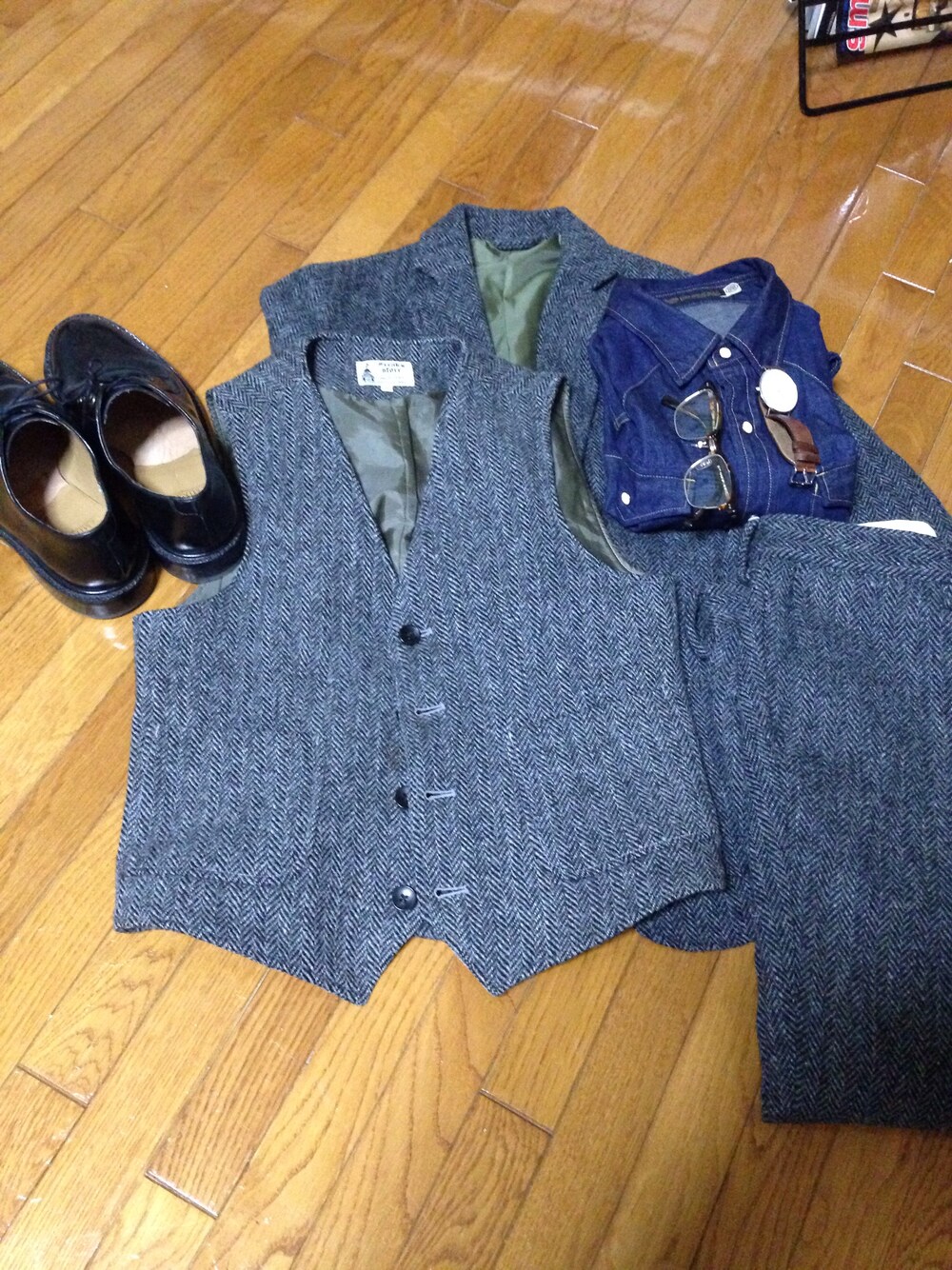 やっとハリスツイードのセットアップ揃いました👏これから愛用する前に1つコーディネート作ってみました👀
