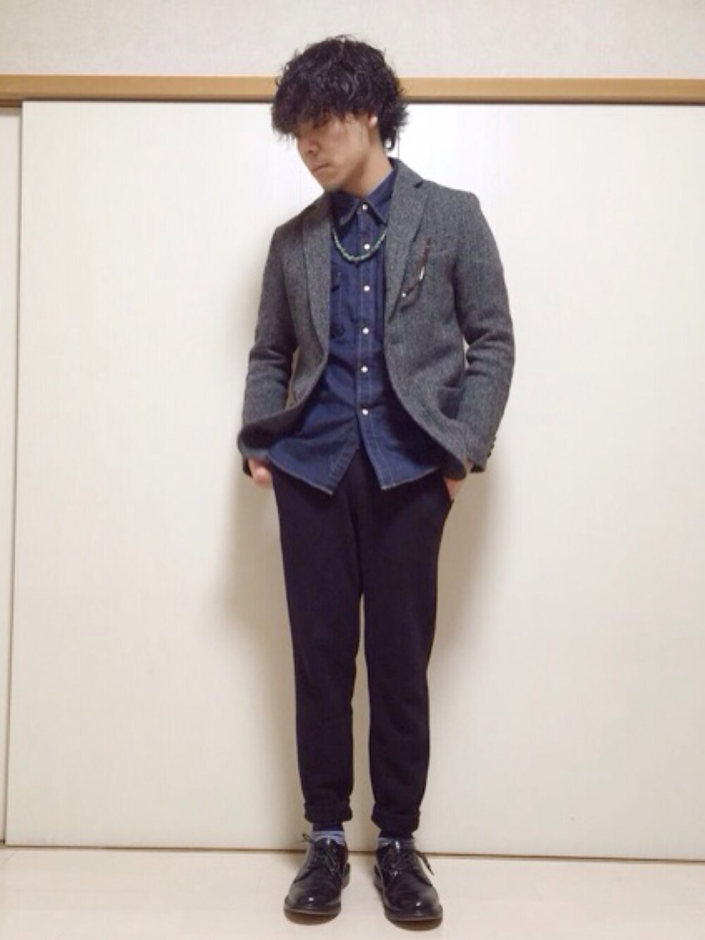 今日はスウェットパンツにデニムシャツ、ジャケットできれいめカジュアルにコーディネートしました👀 今日も1日お疲れ様でした! したらばまた👋