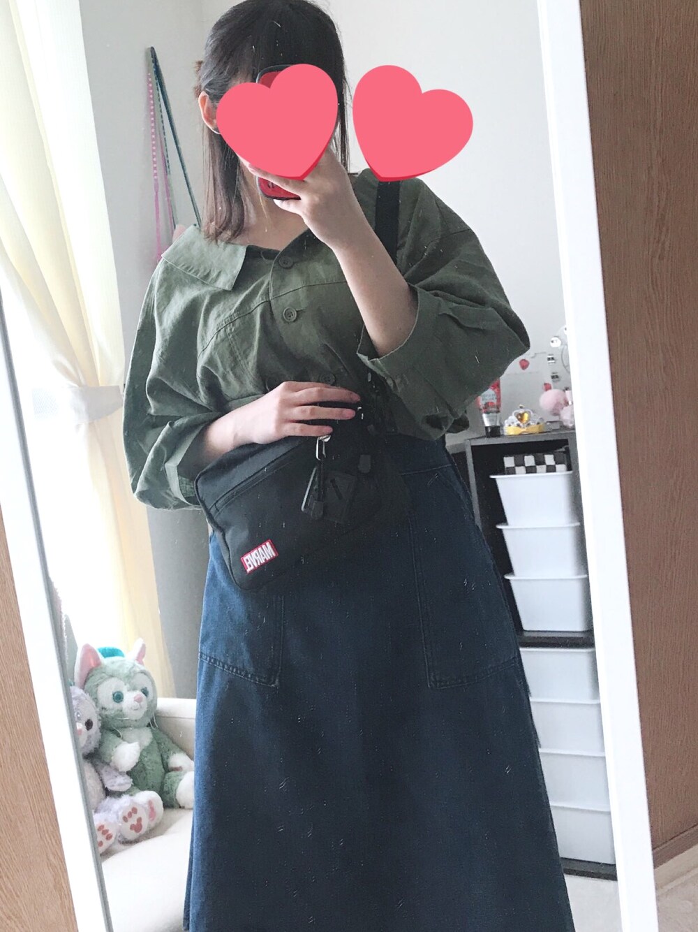 部屋に鏡が届きました。新品なのに汚い…。 お背中とっても可愛いアウターです。