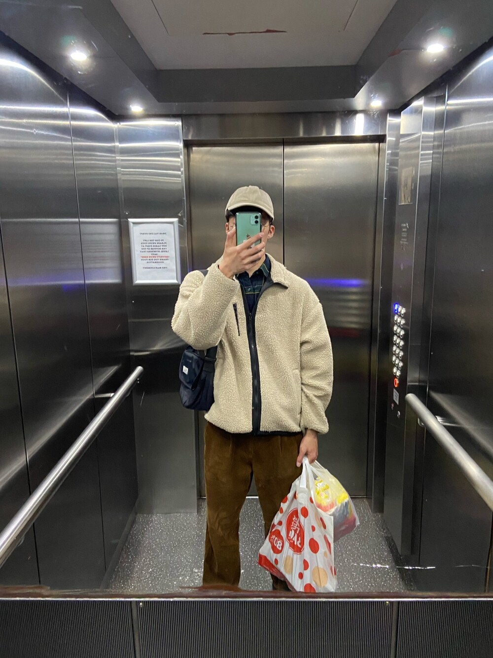 今後は、 エレベーターの鏡で撮ったやつ載せることにする 買い物から帰ってきた様子
