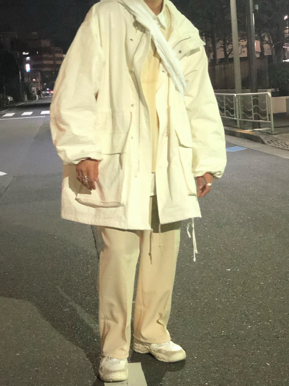 ホワイト系のジャケット/アウターを着用したメンズの冬コーディネートの1枚目の写真
