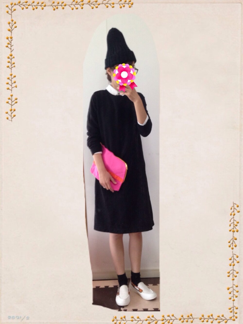 ニット帽・GU シャツ・古着 ワンピース・MUJI 靴・?