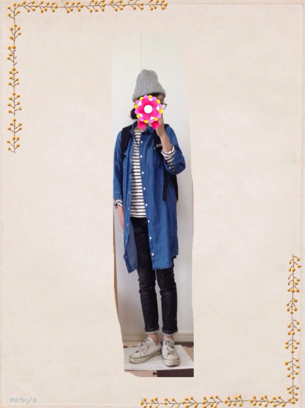 ニット帽・? ボーダー・UNIQLO スキニー・sweet camel シャツワンピ・ワールド ワイド ラブ スニーカー・コンバース