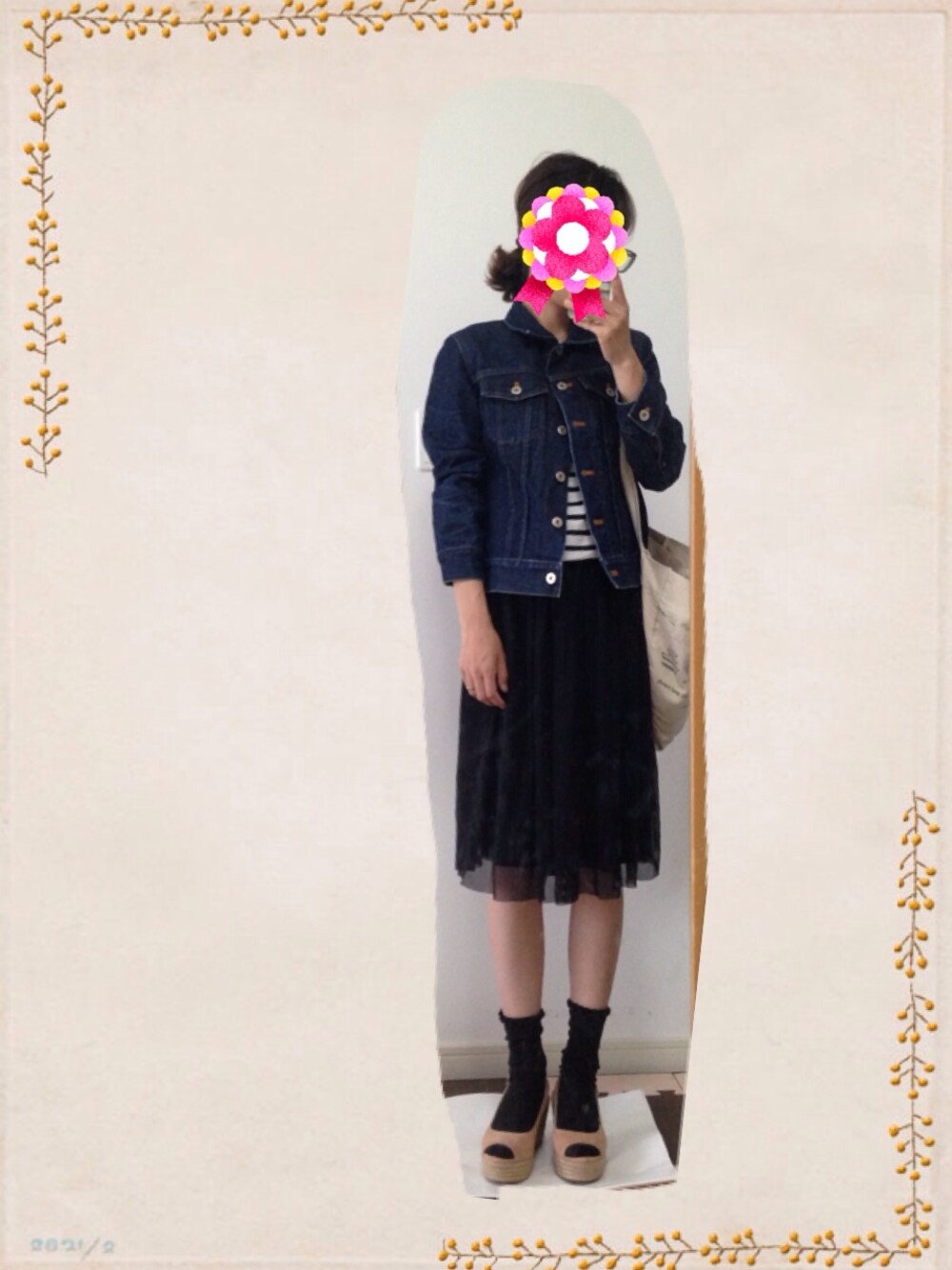 デニムジャケット・スカート・古着 サンダル・Marie femme バッグ・niko and...