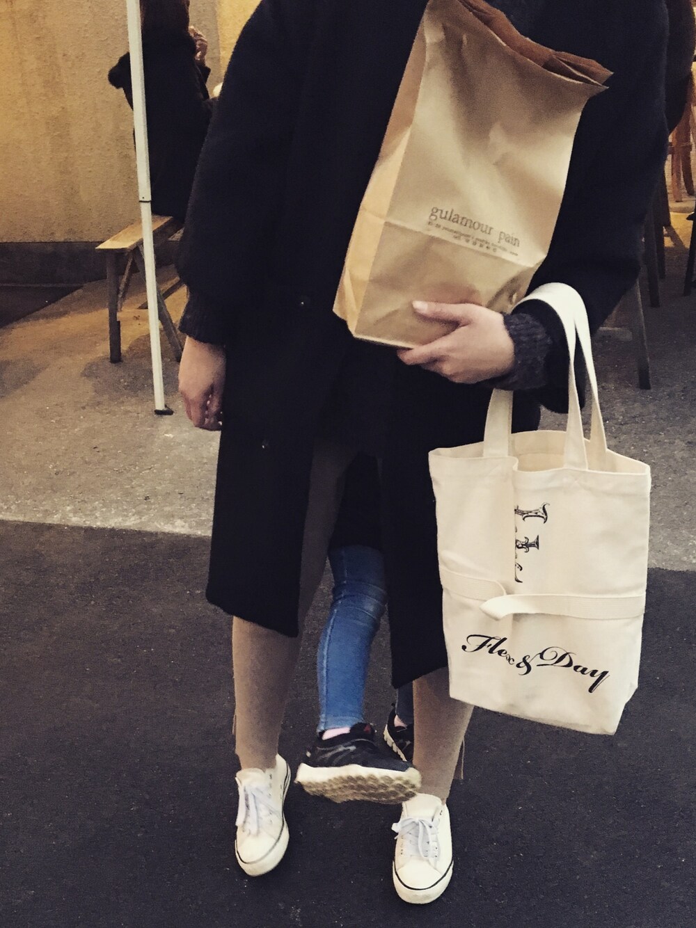 パン買った後の一こま(笑) 心霊写真か思うたー! 娘の足😂