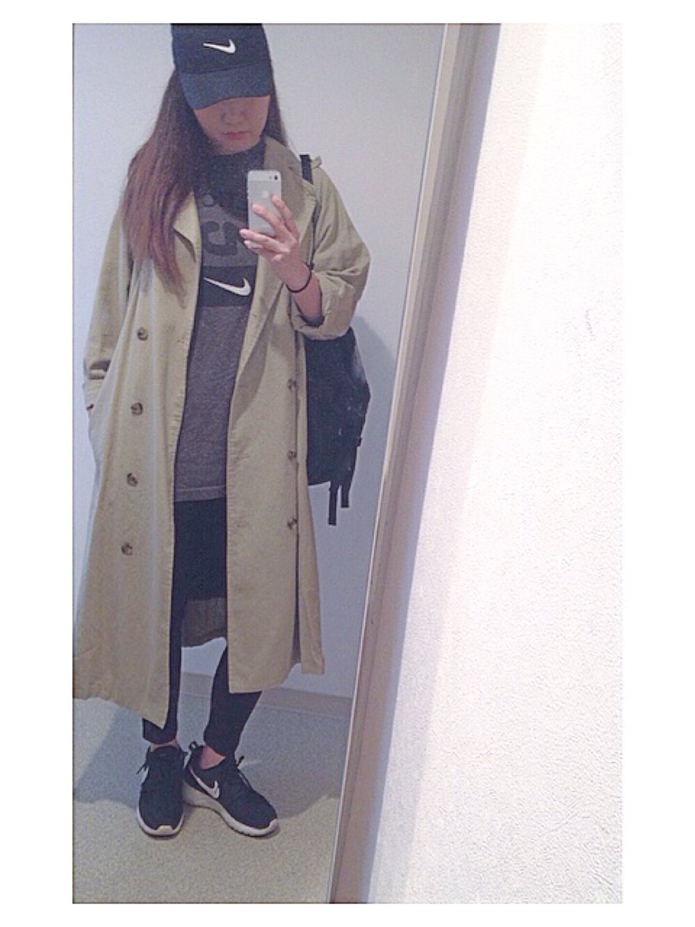 ナイキ尽くし✔️ 久々にローシラン履いた❤️ teeはナイキの古着👕💕 今日は風強くて肌寒かったから トレンチコートきた🙄💦
