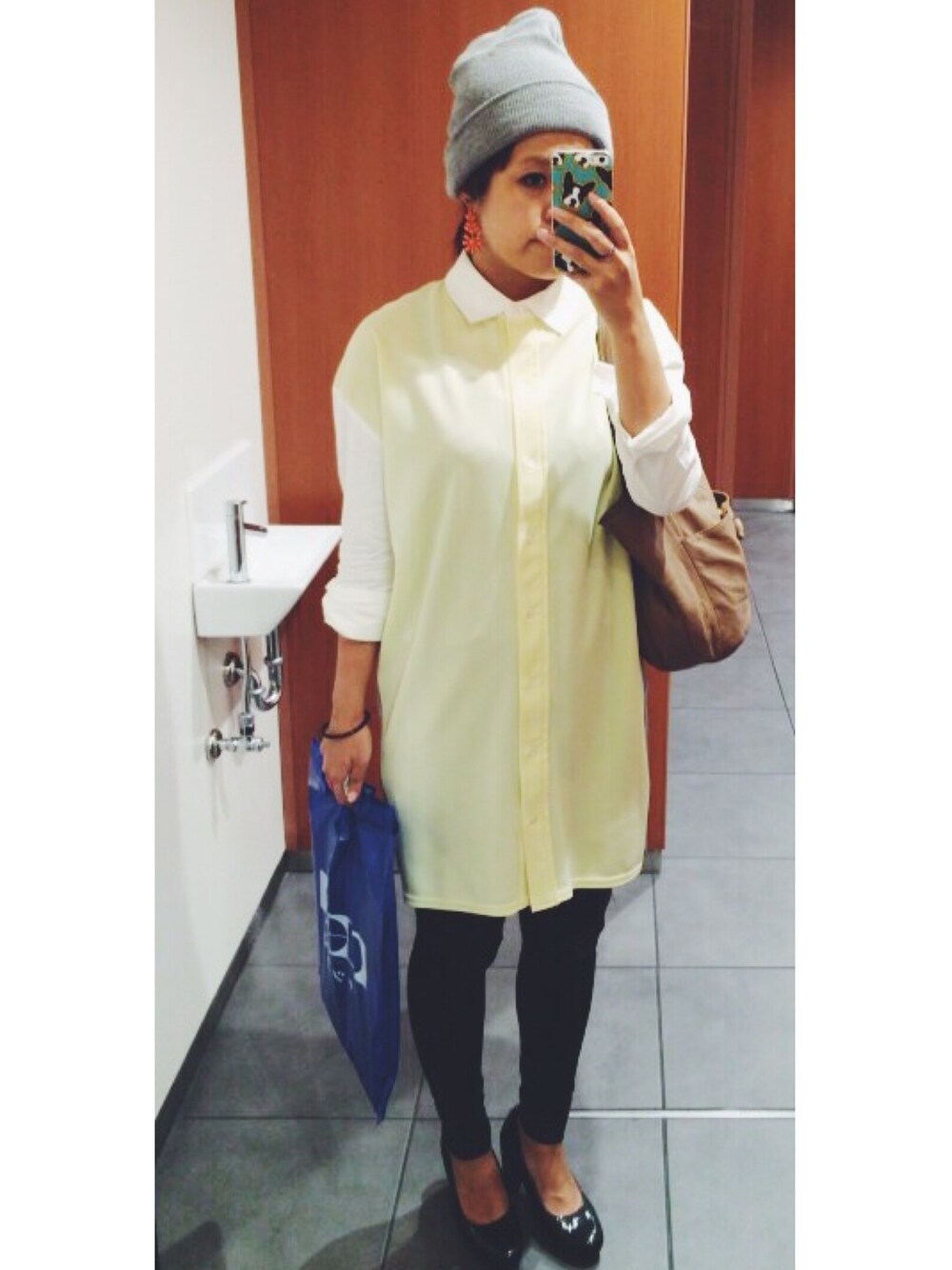 お気に入りシャツワンピ! ポロシャツのミックス素材& 背中がグレーでこれまた可愛い! 見えないけどー(笑)(◜◡◝ )