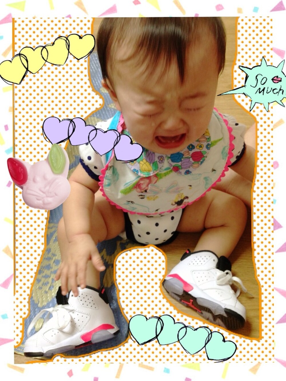 くつ:ベビージョーダン ボディスーツ:オールドネイビー まだ履けないですが、パパと色違いで購入(^^)☆