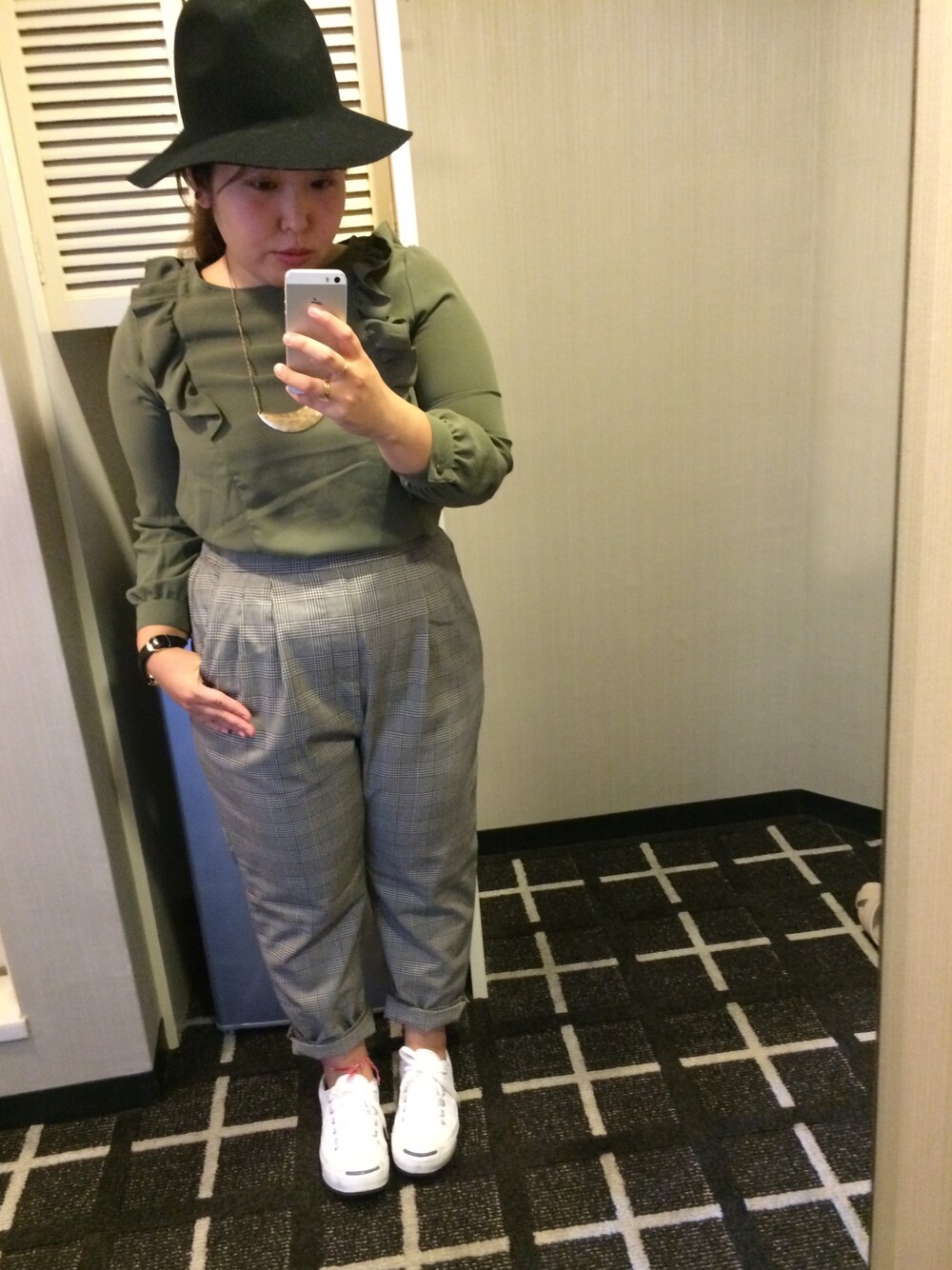 のんこのパンツ「(GU)イージークロップドテーパードパンツ(グレンチェック)」を使ったコーディネート