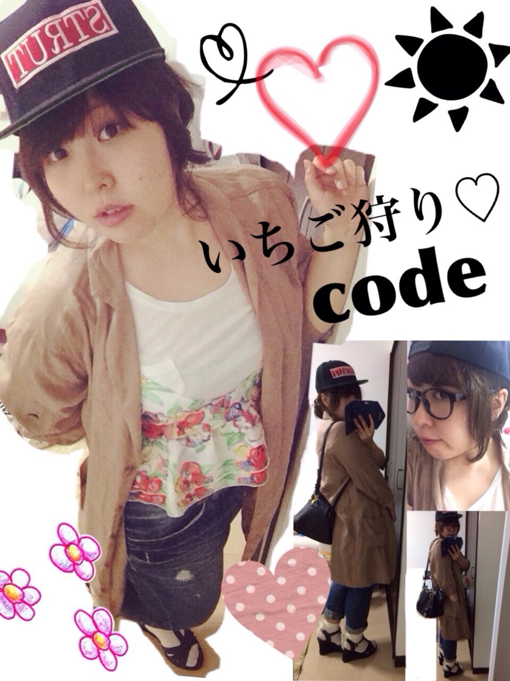 里奈ちゃんとの いちご狩りコーデ♡ ビスチェと白Tのシンプルコーデに キャップで更にラフにーー 足元のソックスのリボンで ガーリーをプラス♡ あーーーーー 楽しかったっ♡♡♡