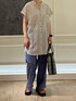シアー素材のブラウスは、吸水性抜群の素材で夏の暑い時期でも使える優秀アイテムです! 少し光沢のある素材感で、大人カジュアルスタイルの完成!!!