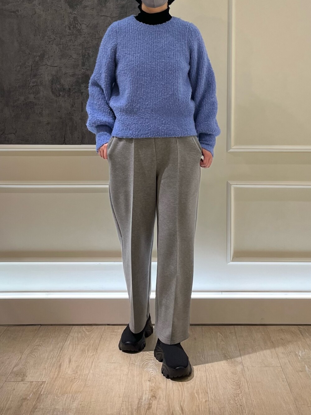 ふわふわ素材のニットは、柔らかいカラーなので春まで使えます! ダンボールニット素材のパンツは、ストレスフリーで履き心地抜群です!