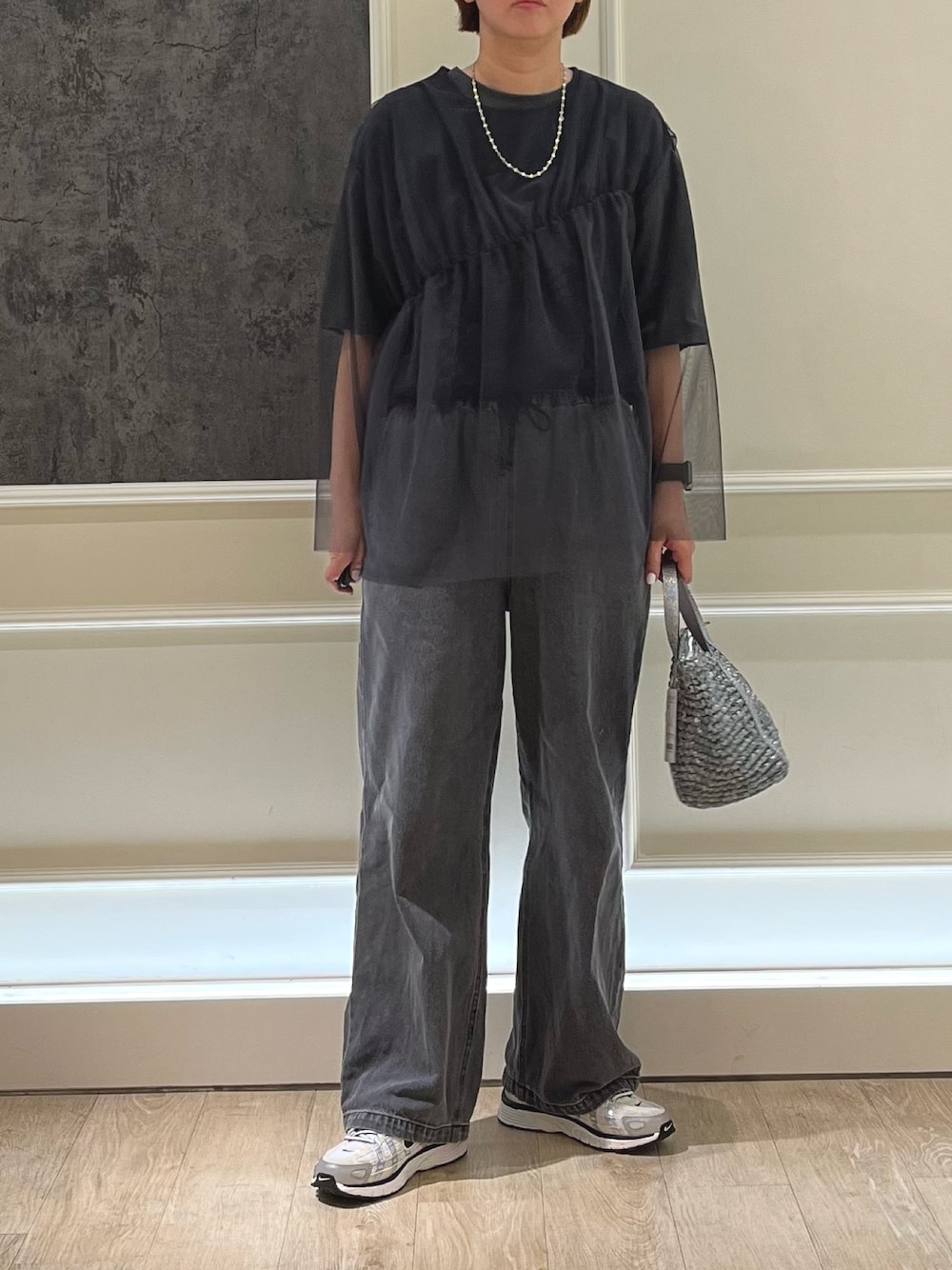 チュールアイテムは甘くなりすぎないようにデニム合わせで!