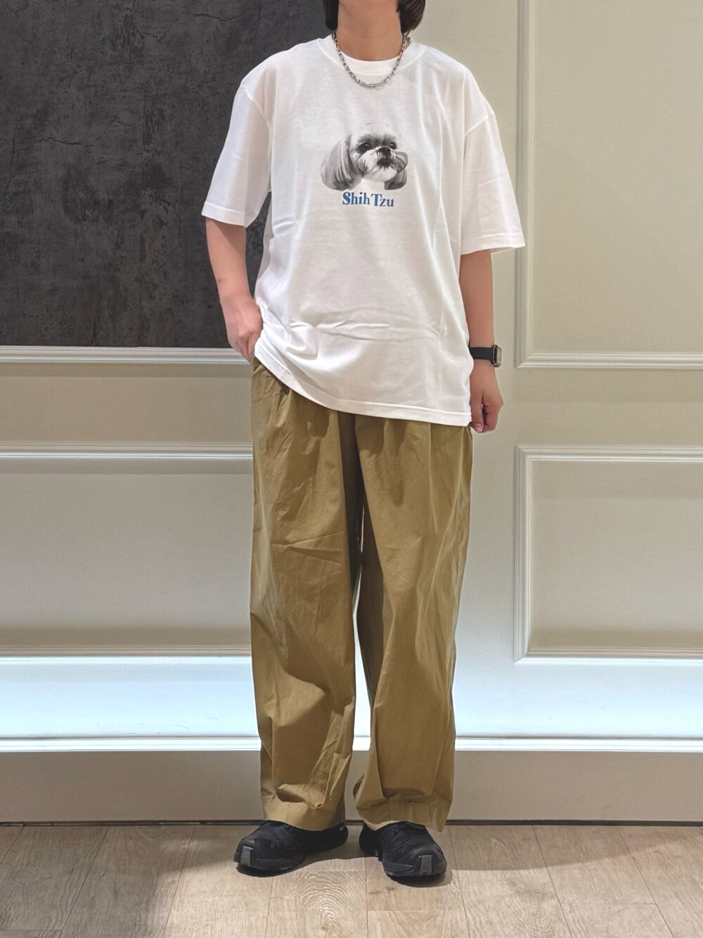 Hayashida (fredy 横須賀店)のTシャツ/カットソー「【新柄追加】【GLOSTER/グロスター】DOG&CAT 犬猫プリントTシャツ」を使ったコーディネート