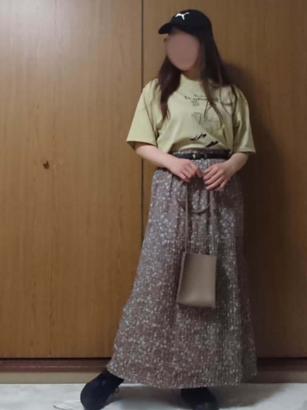 くすみグリーンと花柄🌼🍃 黒系のベルトもってないんだよな…と思っていたらでてきました、いただきもの🙆