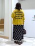 PEANUTS/ロゴVネックカーディガン☺︎ PEANUTS×GLOBAL WORKのコラボアイテム ユニセックスで着られるジャガードニットのVネックカーディガン キャラクターに合わせたカラーとバックロゴがアクセントに! オーバーサイズなので、秋コーデのアウター代わりにもおすすめです◎