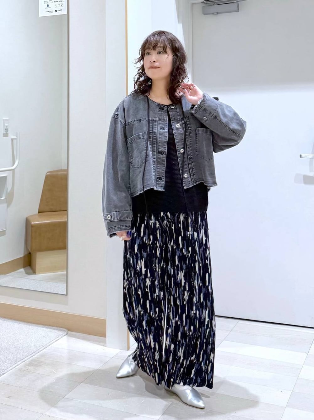スタラボ -GLOBAL WORK STAFF LAB- しゅりさんプロデュースのデニムブルゾンとニットプルオーバー やわらかデニムシャツブルゾン☺︎ 厚手すぎない素材なのでこれから春に向けてぴったりのデニムブルゾン ノーカラーデザインなので肩周りがスッキリ見えるのがこだわりポイントです ショート丈なのでバランスが取りやすく、ワイドパンツやスカートとの相性も抜群! 裾のフリンジや後ろのフリルもお洒落^ ^ 2WAYメッシュラメプルオーバー☺︎ 透けすぎない絶妙なメッシュ生地で、着るだけ技いらずで抜け感の出る春ニット 前後2WAYで着ていただけます◎ インしなくてもスッキリ着れる!程よいラメが可愛い! この春おすすめのニットです^ ^ セットで合わせても可愛くお洒落に着ていただけます◎