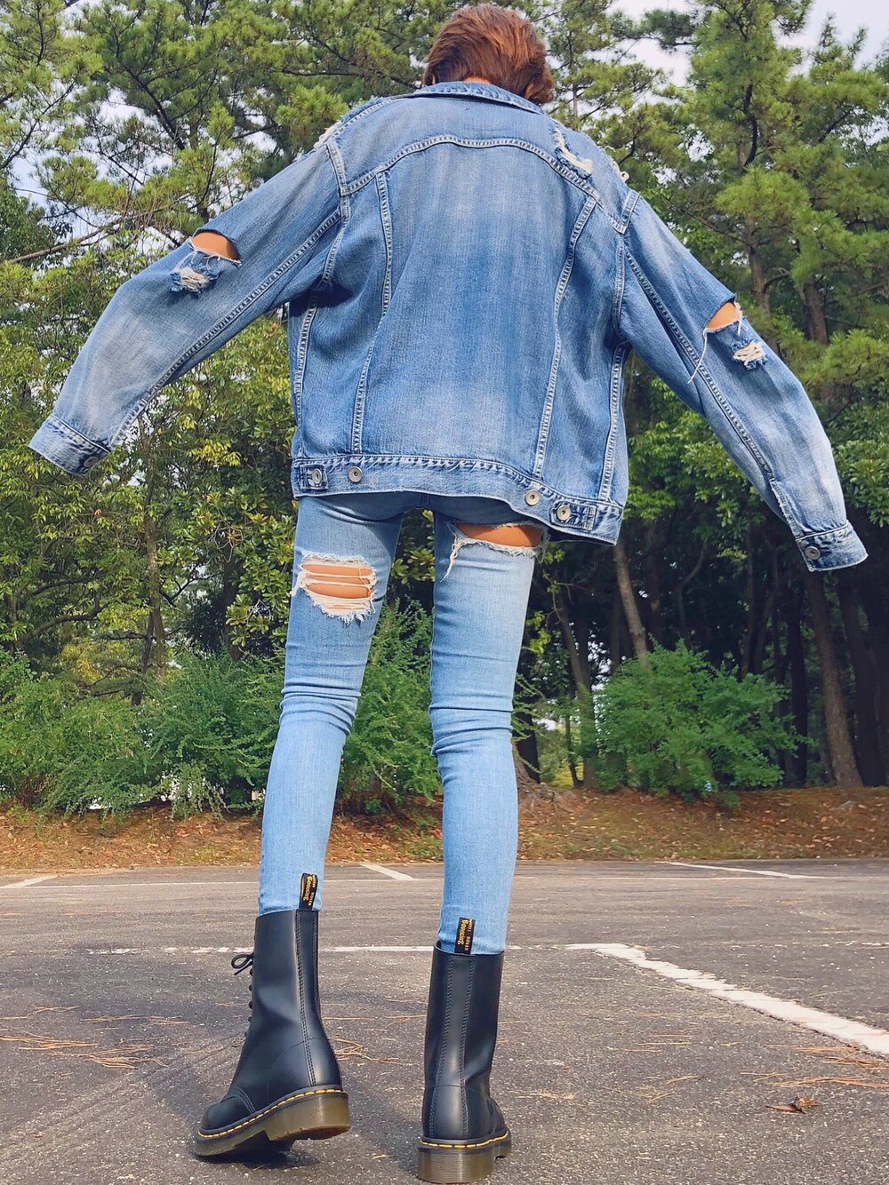 KANONのデニムジャケット「スリーブダメージGジャン」を使ったコーディネート