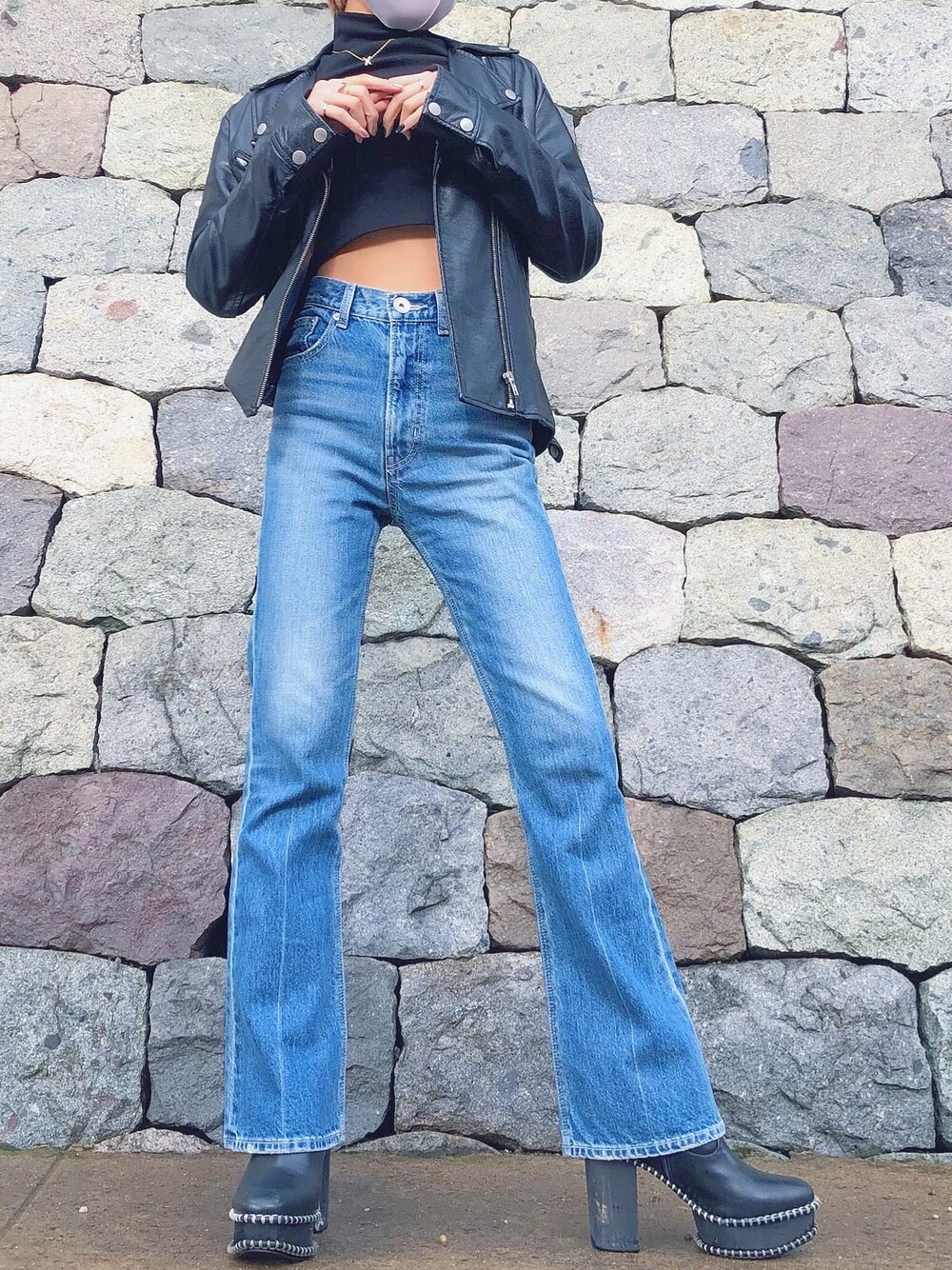 KANONのデニムパンツ「ワイドフレア USED デニムパンツ」を使ったコーディネート