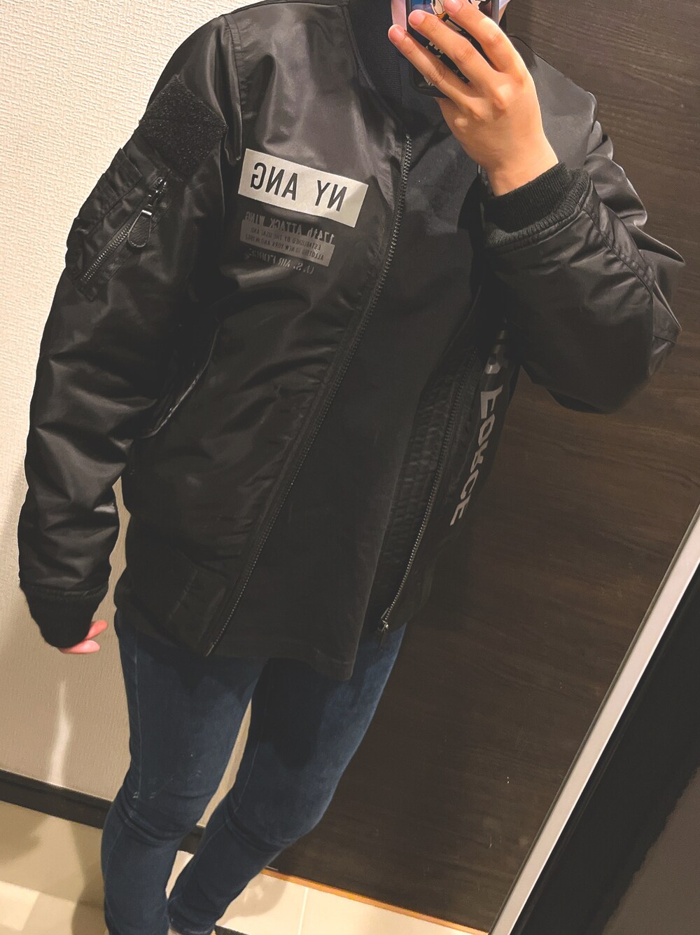 急に朝晩肌寒くなったので この前購入したMA-1を早速着ました🌟 薄手でこの時期にピッタリです! 色味を迷っていましたがお店のお姉さんにも勧められたブラックを買って正解です🫶