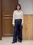 ジャケット×デニムフレアパンツのコーディネートはかっちり感が強めに出るのでキャップで外すと◎