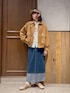カジュアルすぎないスタイル! デニムパンツだとかっこよすぎるからデニムのスカートでふんわり印象に◎