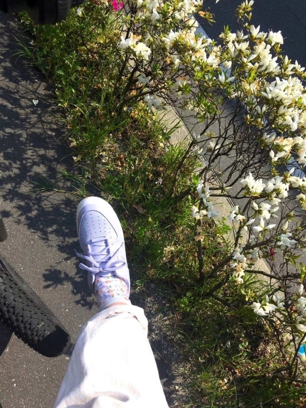 去年、お誕生日にもらった紫色の靴!! コーデはしにくいんだけど、可愛いんだ〜💜 そしてそして、白のシンプル靴下の上に、スケスケの花柄靴下を履くという二枚履き🙂