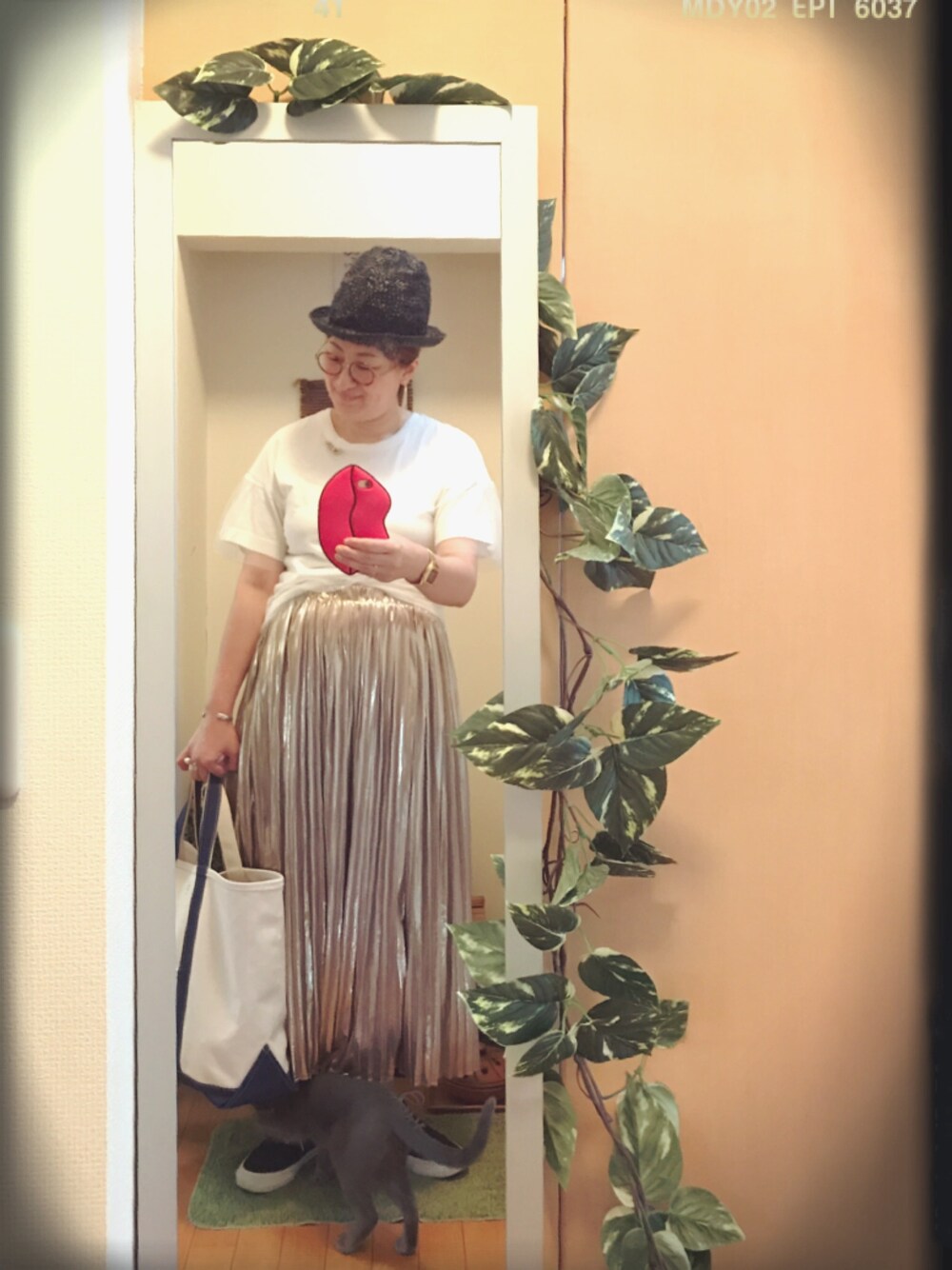 Cherpaのマウンテンハット チュール付Tシャツ…w closet 金ピカのスカート…AnnaKerry アミアミの靴下…靴下屋 靴…converse bag…orcival 豆のブローチ…Palnart Poc おNEWな帽子✨ 大好きな〜マウンテンハット✨ これ、 紺ですねん。 そして、 専用の袋付いてますねーん! マウンテンハットを逆さにして バッグみたいに持ち歩くぅ♪ さすがCherpa😚 紺のマウンテンハットやから、 靴もバッグも紺にして、 金ピカのスカート合わせて… はい! 変なおばさんの出来上がりっっ😂 あ。 足元に音ちゃんおります! スカートに入りたいらしい… ママが仕事に行くのを… 阻止したいらしい😍 なんと可愛いことっっ😍 さ。 土曜日の仕事、がんばろ。 今日1日頑張ったら、 明日お休みやしね〜 あ。 iphonケース。 唇👄ゲット!