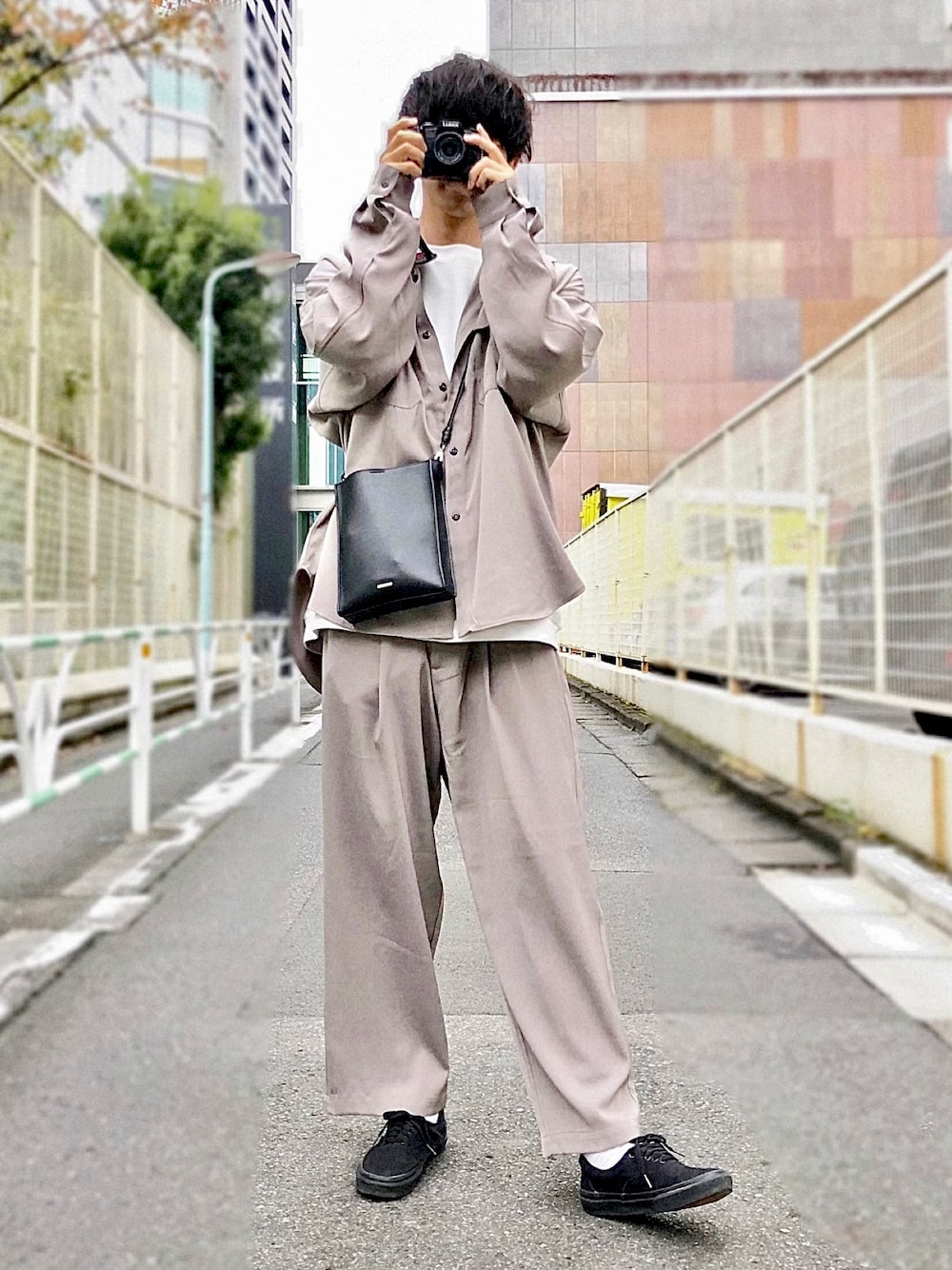 のぞみのシャツ/ブラウス「【セットアップ】ポリトロツイルCPOビッグシルエットシャツジャケット&ベルト付きワイドパンツ」を使ったコーディネート