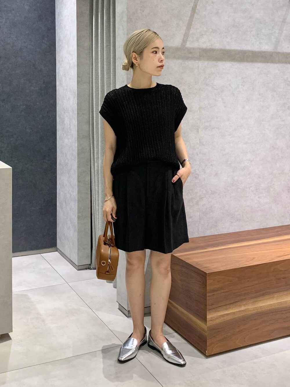 夏のブラックコーデ♪ 素材違いにする事で重たい印象にならず着ていただけます☺︎