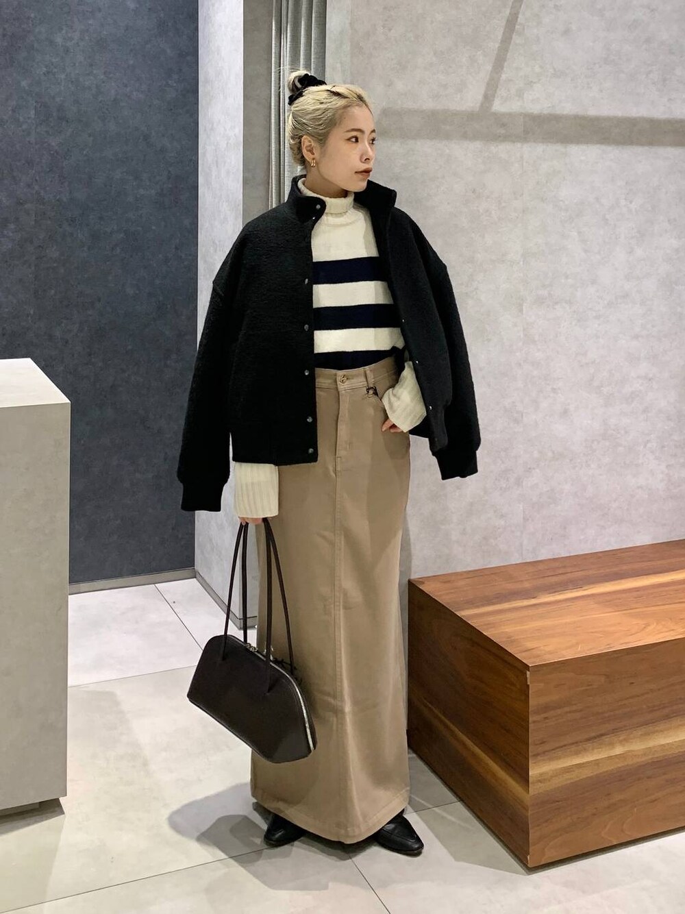 人気のスライバーブルゾンも セール価格になりました♡ Sサイズでもニットかさ張らず着やすいサイズ感◎ 丈はやや短めなので低身長さんはバランス取りやすくておすすめです〜〜!✨️ スカートは夏にリアルバイしてずっとヘビロテしてます♡