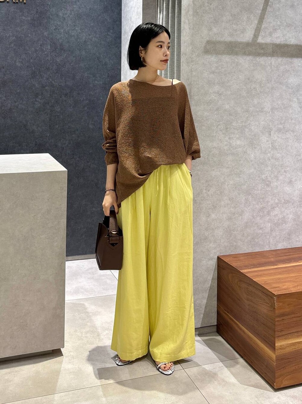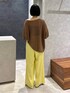 レモンカラーが引き立つコーディネート🍋 大人カジュアルな雰囲気にしたかったので、 ブラウンのトップスを合わせました♪ トップスはペーパー素材で抜け感が出ます◎
