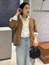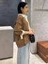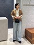 シンプルなシャツ合わせ♪︎ 王道にカーディガンと重ねると秋のムードが感じられますね。