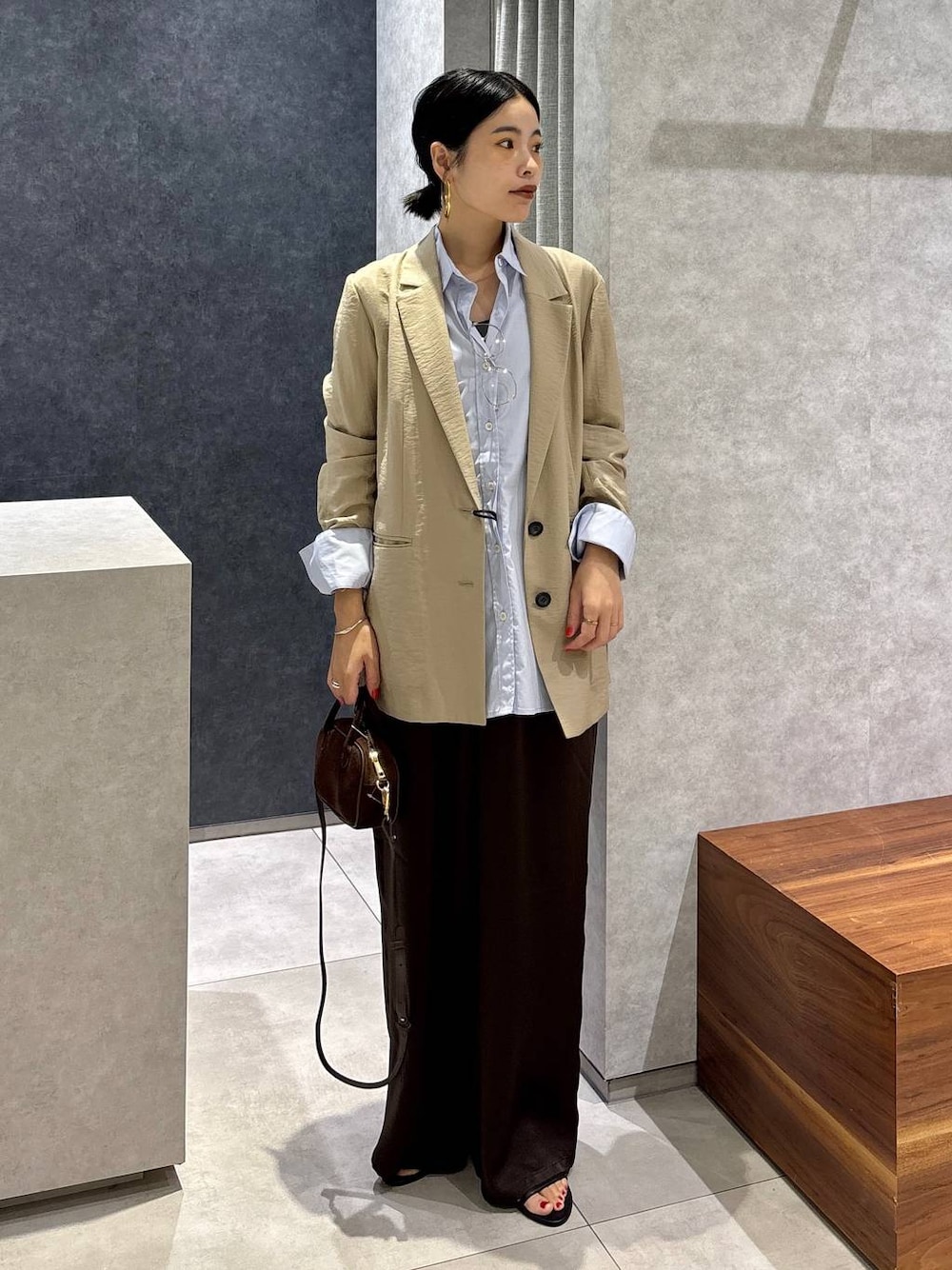 パープルみのあるブルーシャツ♪︎ ブラウンとの相性○です♪︎