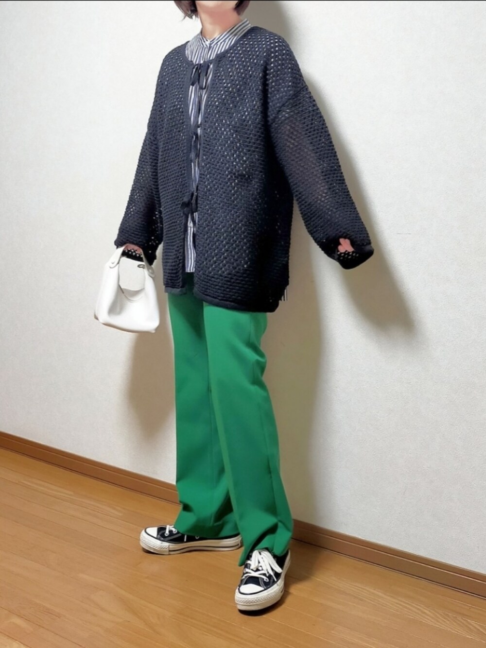 ご覧いただきありがとうございます✨ 🌼〜🌼〜🌼〜🌼〜🌼〜🌼〜🌼〜🌼〜🌼〜🌼〜🌼 たまに履きたくなるカラーパンツ 🍀WEGO 2wayリボンメッシュカーデ 私ぐらいの身長でお尻が隠れるいい丈感です メッシュだから羽織っても重たく見えないのが◎ 🌼〜🌼〜🌼〜🌼〜🌼〜🌼〜🌼〜🌼〜🌼〜🌼〜🌼 前回のコーデを素敵なフォルダ📂に 入れてくださった皆さま❤ いつも本当にありがとうございます🥺 感謝の気持ちでいっぱいです✨ お名前の漏れがあると申し訳ないので まとめてのお礼にかえさせてください🙏