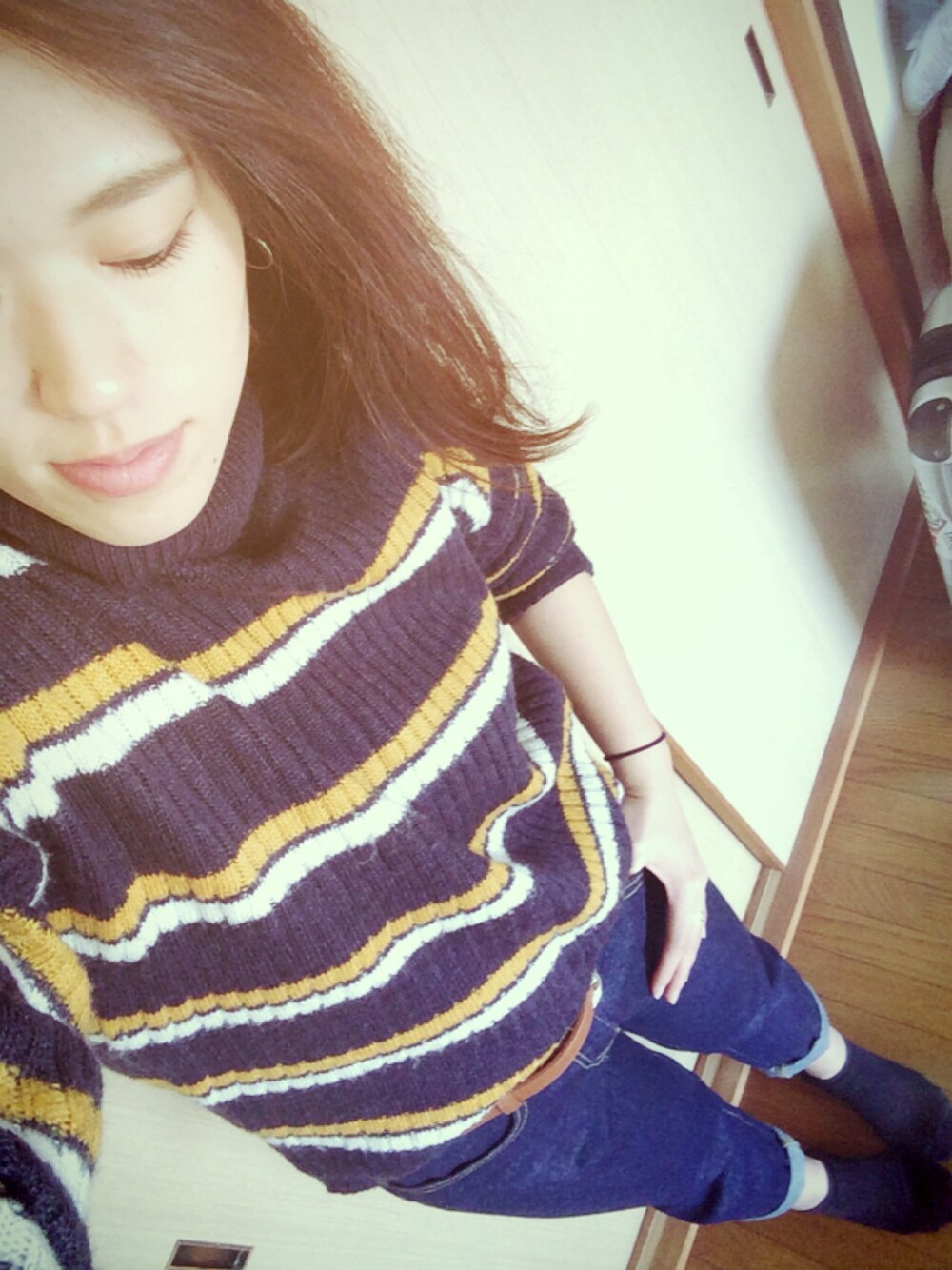 休日ラフ着👖👟💛 靴は黒のハイカットコンバース★ モカ🐶のカットに出かけて あとは家でまったり😇✨ さいこー🙌🙌