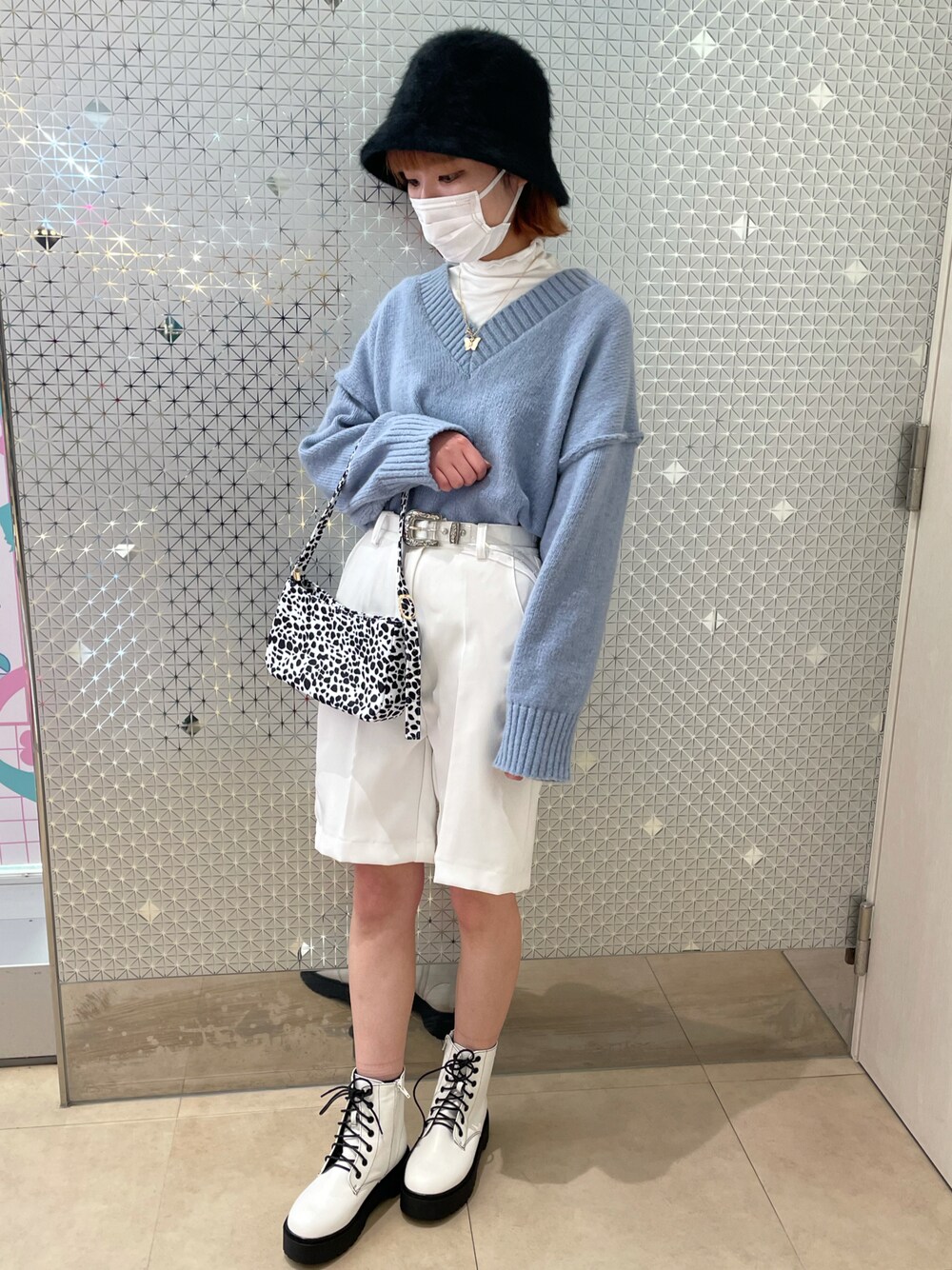 ご覧いただきありがとうございます! 今季トレンドのハーフパンツ🤍 ニットとモコモコのバケハと合わせて 冬コーデにしてみました☃️ Instagram→@_0003130_