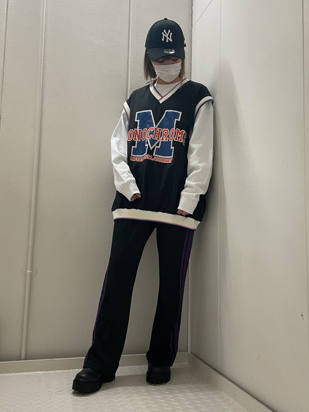 ナイロンベスト × ジャージフレア で 今すぐにスポーツ出来ちゃいそう🏀💨 ゆるっと楽ちんなのに オシャレに見えるのありがたい🥺❤️🔥 Instagram→@_0003130_
