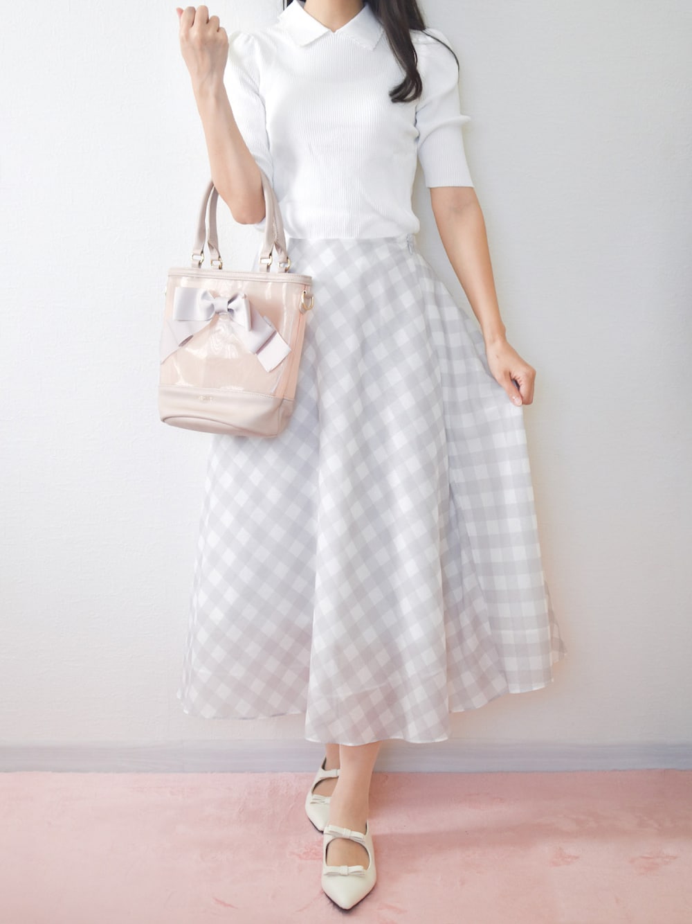 その淡いグレーのギンガムチェックがかわいい🥹💕 シアー感があって、夏にぴったり☀️