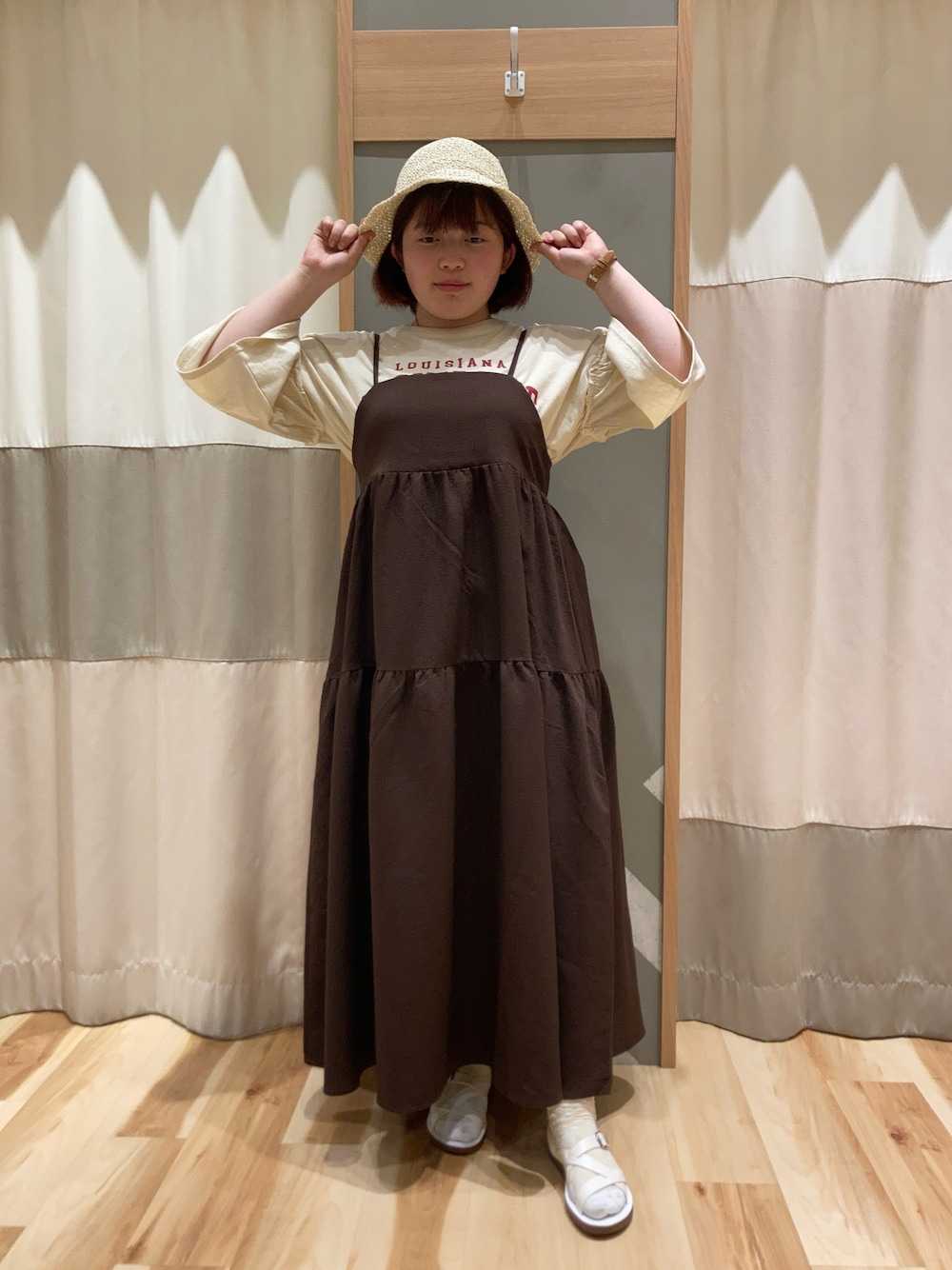 Tシャツはトレンドのアニマルプリントとロゴプリントがあり、色によって柄アソートになっています。 ワンピースはティアードでシルエットにボリューム感があります。後ろの紐で長さ調節ができるので使いやすくなっています。 帽子は深くかぶれるタイプなのでゆったりしたものをお探しの方にはぴったりです。ペーパーハットは夏でも涼しくお使い頂けるのでおすすめです。 靴はクッションが柔らかく、足が疲れにくいです。カジュアルやキレイめなどコーディネートに合わせやすいデザインです。