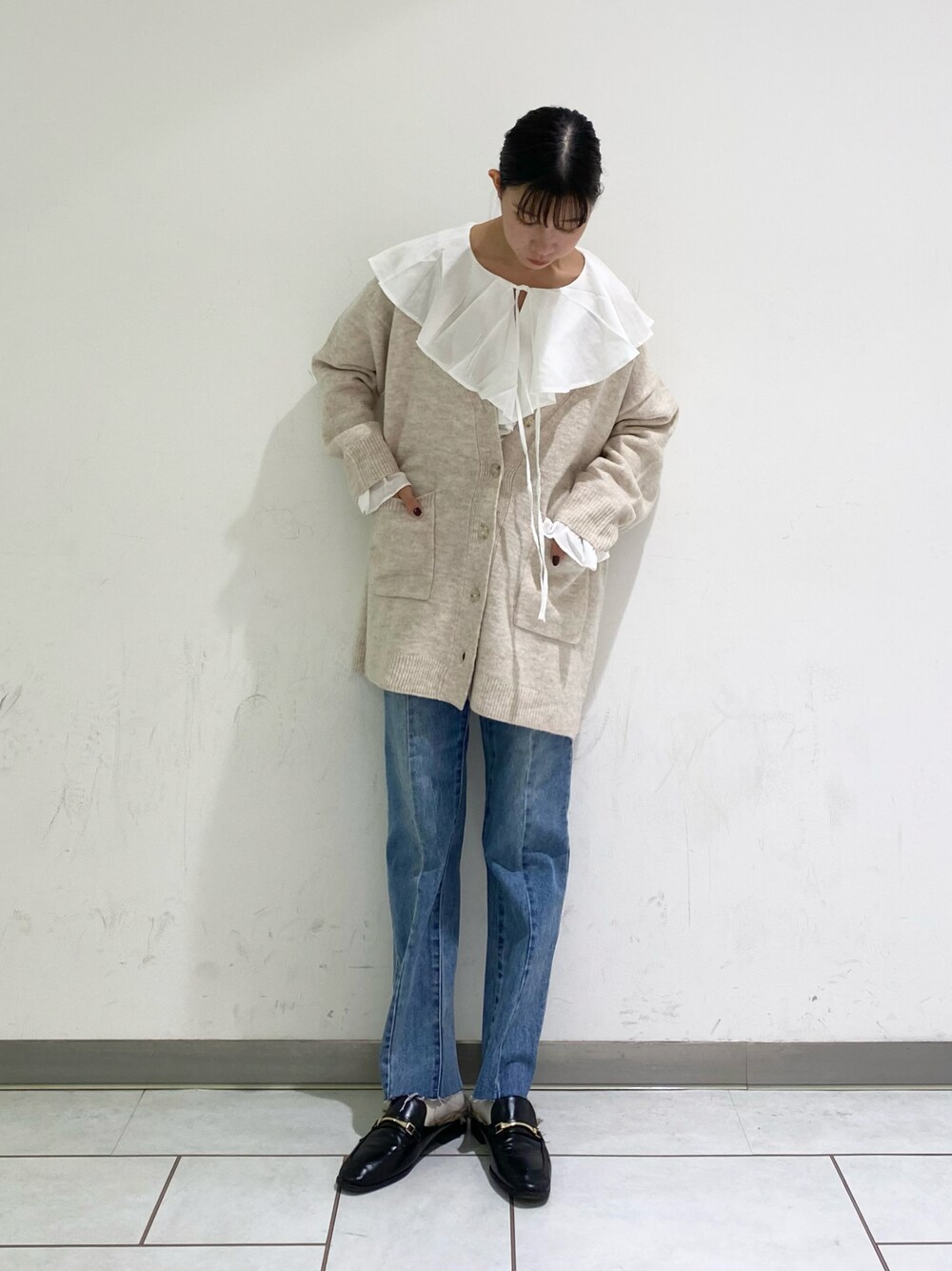 カーディガンは、ベーシックなデザインなのでどんなアイテムでも合わせやすいです( ◠‿◠ ) サラッと羽織るだけで秋らしいスタイリングに🍂🍁 上からアウターを重ねられるサイズ感で、これからの季節にオススメです◎