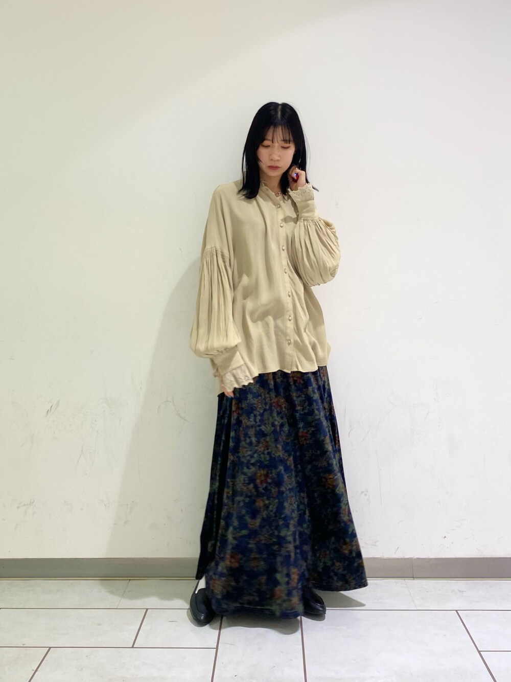 nonoのスカート「プリントベロアロングスカート」を使ったコーディネート