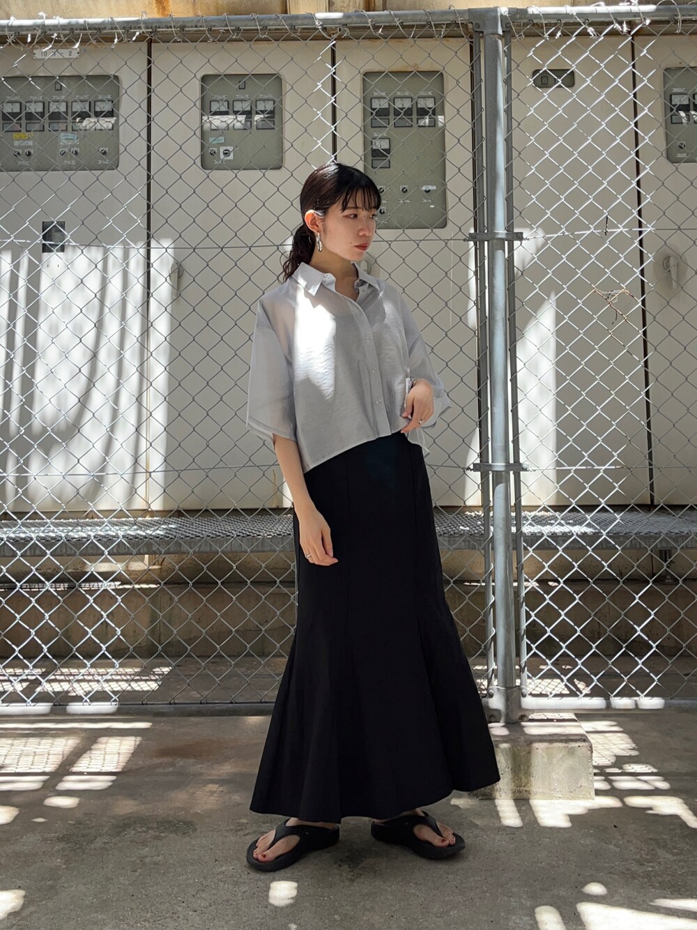 トレンドのマーメイドスカート🧜♀️ ショート丈のシャツでシンプルに合わせました🫐
