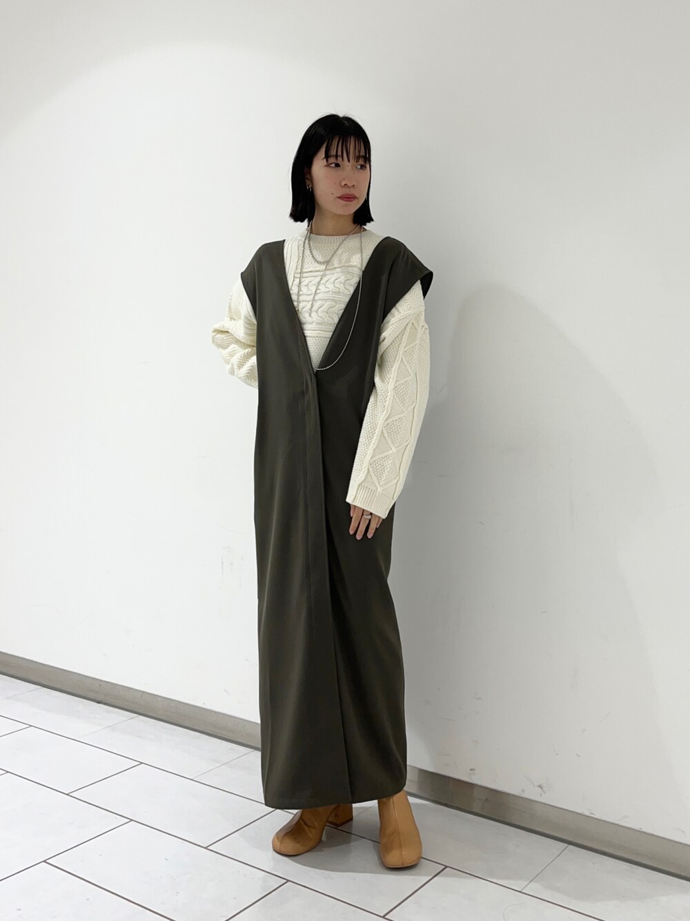 nonoのワンピース「BACKクロスジャンパースカート」を使ったコーディネート