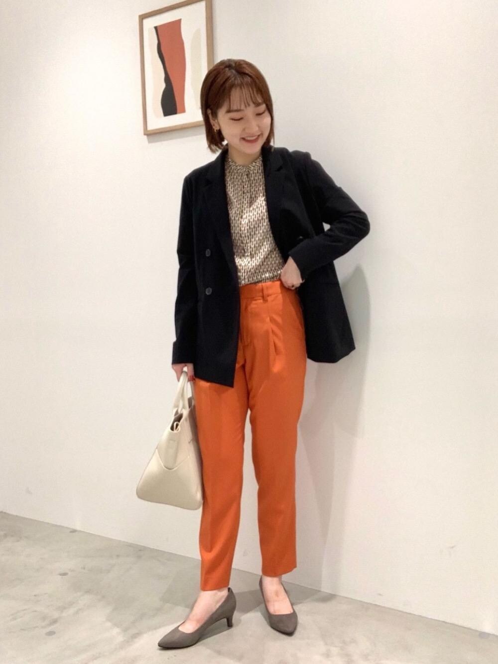【身長】 159cm 【普段サイズ】 ジャケット38/パンツ36/シューズ23cm 【サイズ感】 ジャケット:標準的 パンツ : おしり周り余裕あり シューズ:標準的 【コーディネートポイント】 ブラウスとパンツの色味を合わせ統一感のあるスタイリングに。ジャケットに締め色を入れてカチッとした印象に。