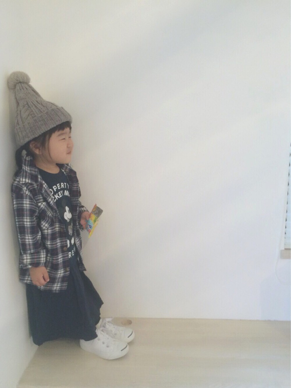 ブルー系のTシャツ/カットソー、ブルー系のシャツ/ブラウスを着用したキッズの冬コーディネートの1枚目の写真