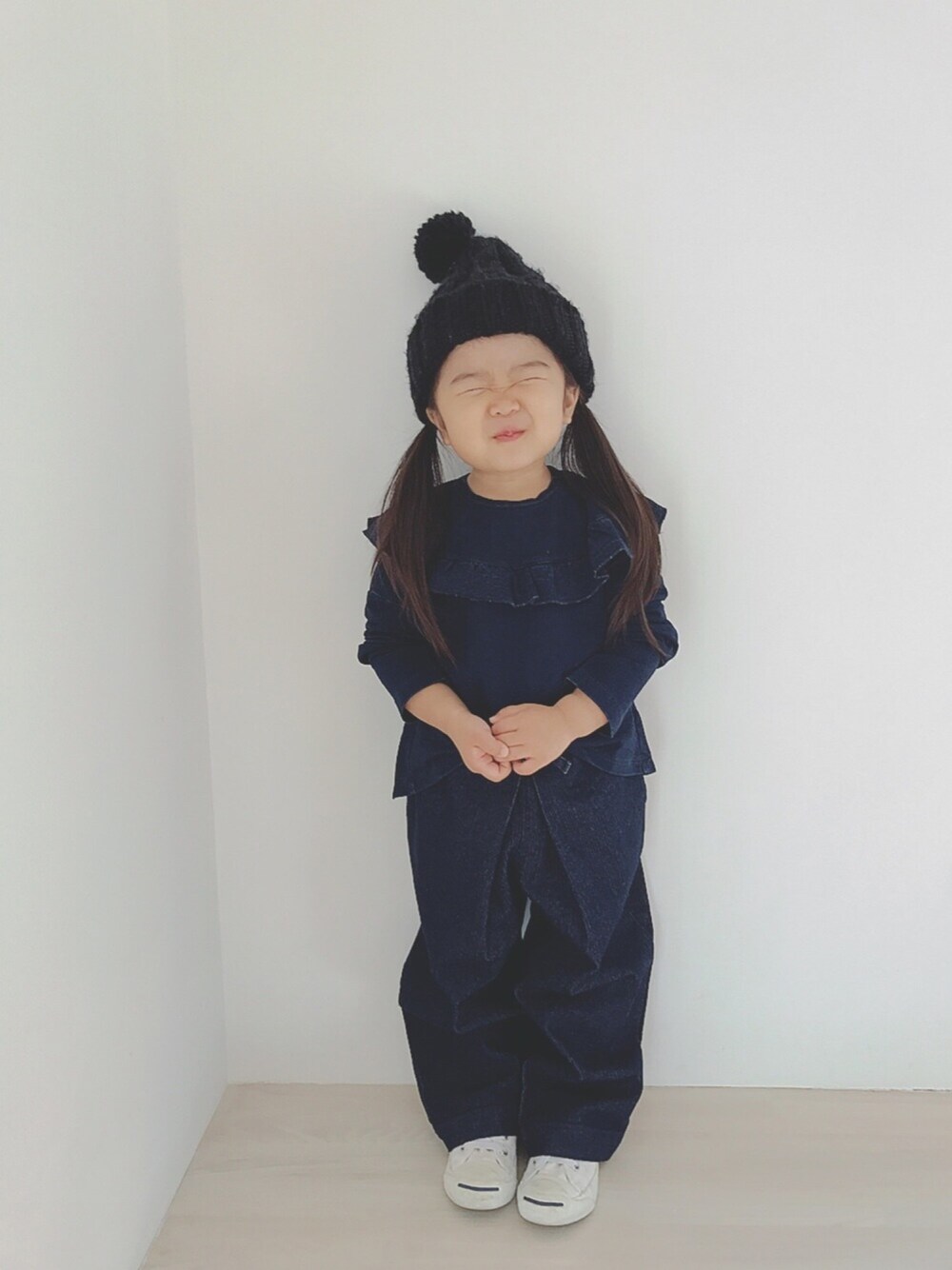 ☀︎hana☀︎のTシャツ/カットソー「INDIGO FRILLYOKE T (80~140cm)」を使ったコーディネート