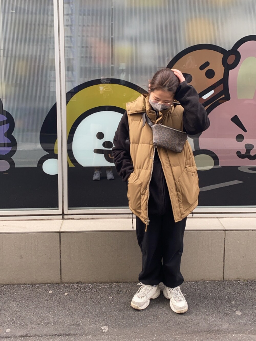 楽ちんすぎるコーデ。 ダウンベストは古着屋さんで買った最近のお気に入り!!